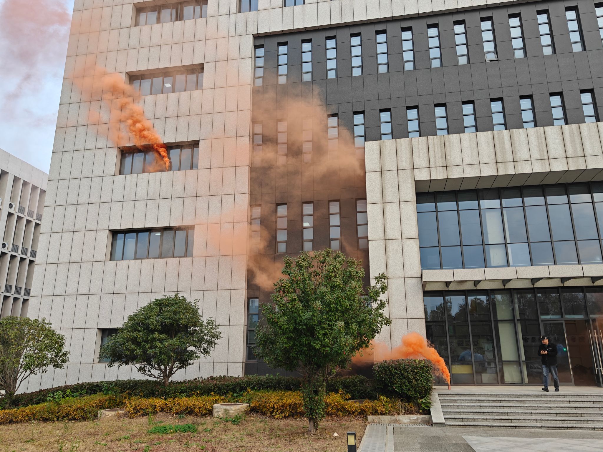 下午16时,建安部工作人员通过楼内消防报警器发布指令,演练正式启动。楼内师生听到消防警报铃声立即进行疏散撤离。师生按照:实验室/自习室/办公室→走廊→疏散楼梯→安全出口→集结点(捕鱼游戏